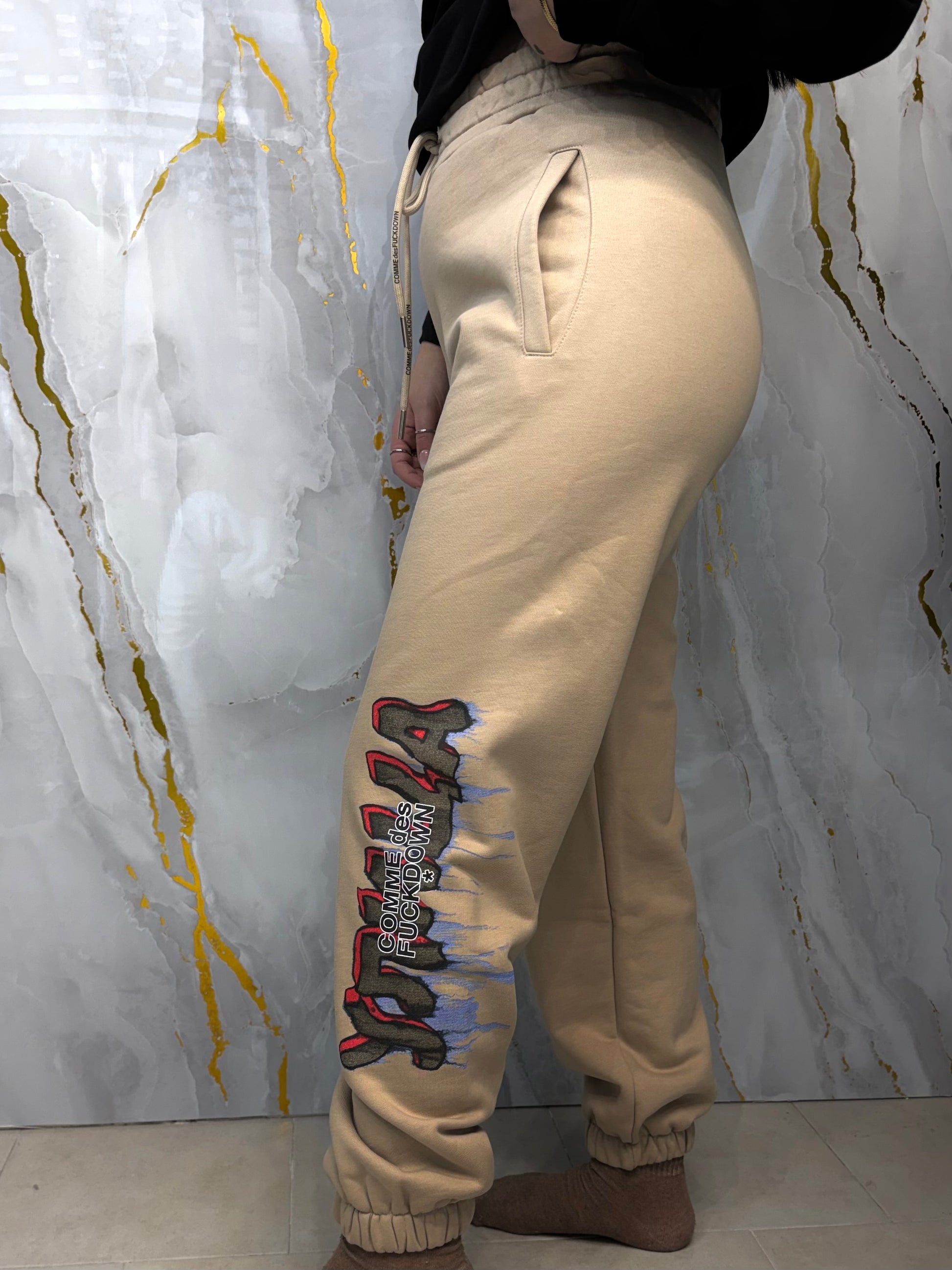 Pantatuta stampa font distorto COMME des FUCKDOWN