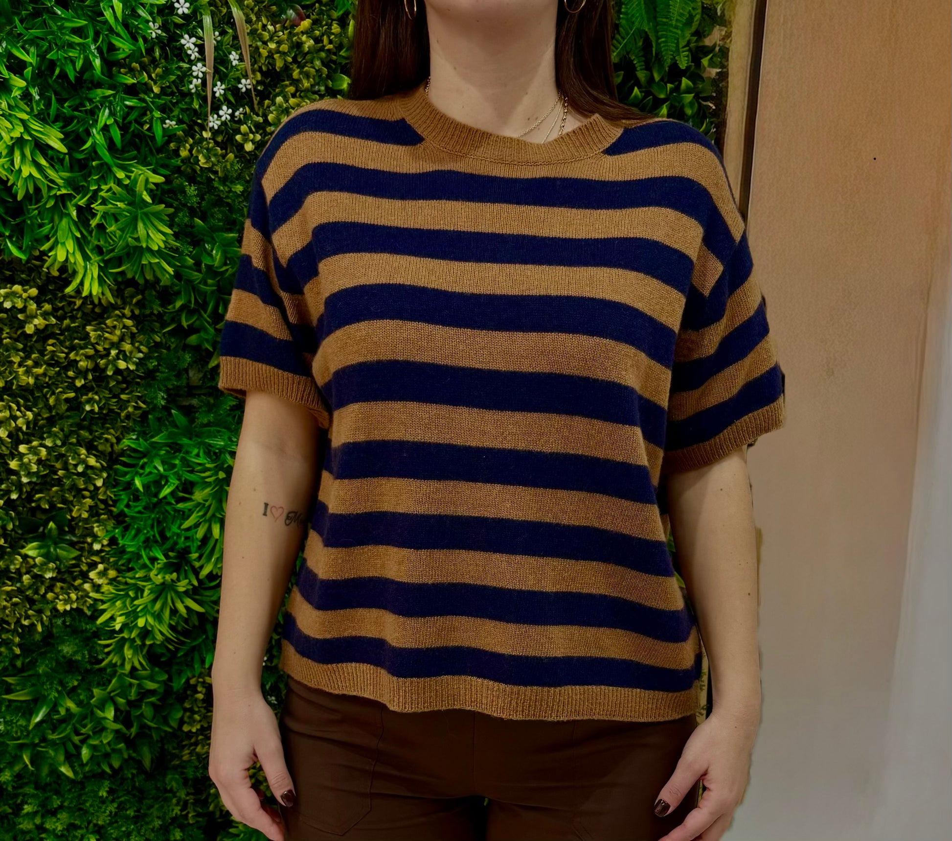 MAGLIONCINO DIXIE a righe marroncino e blu